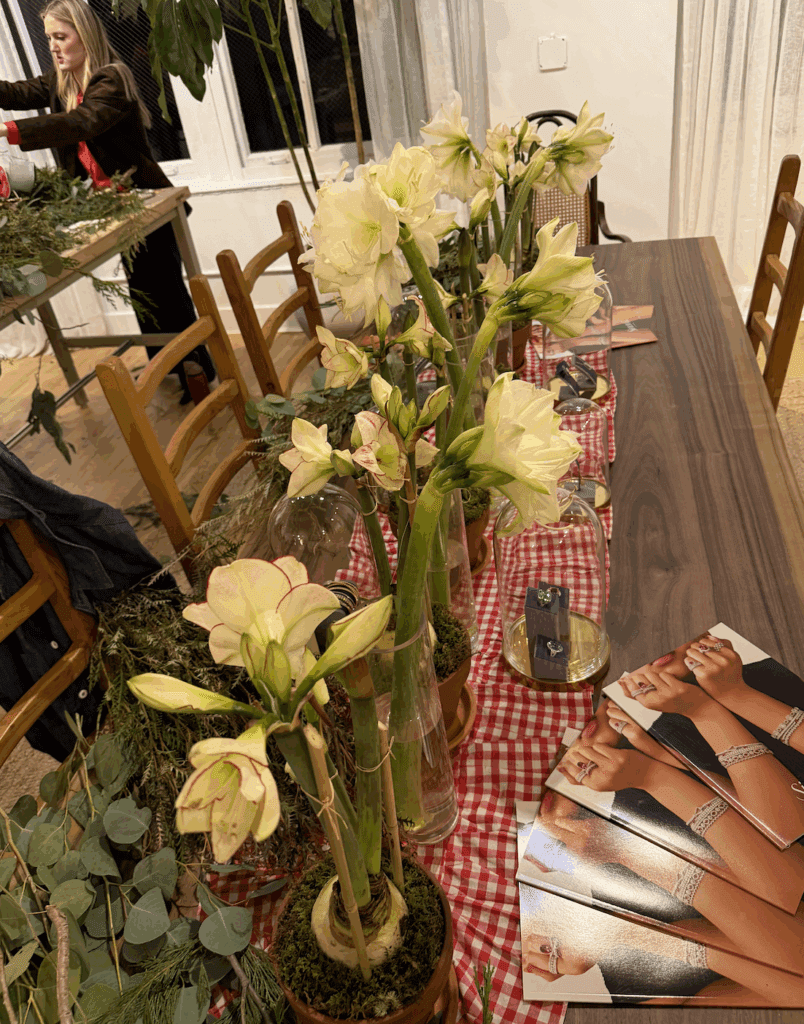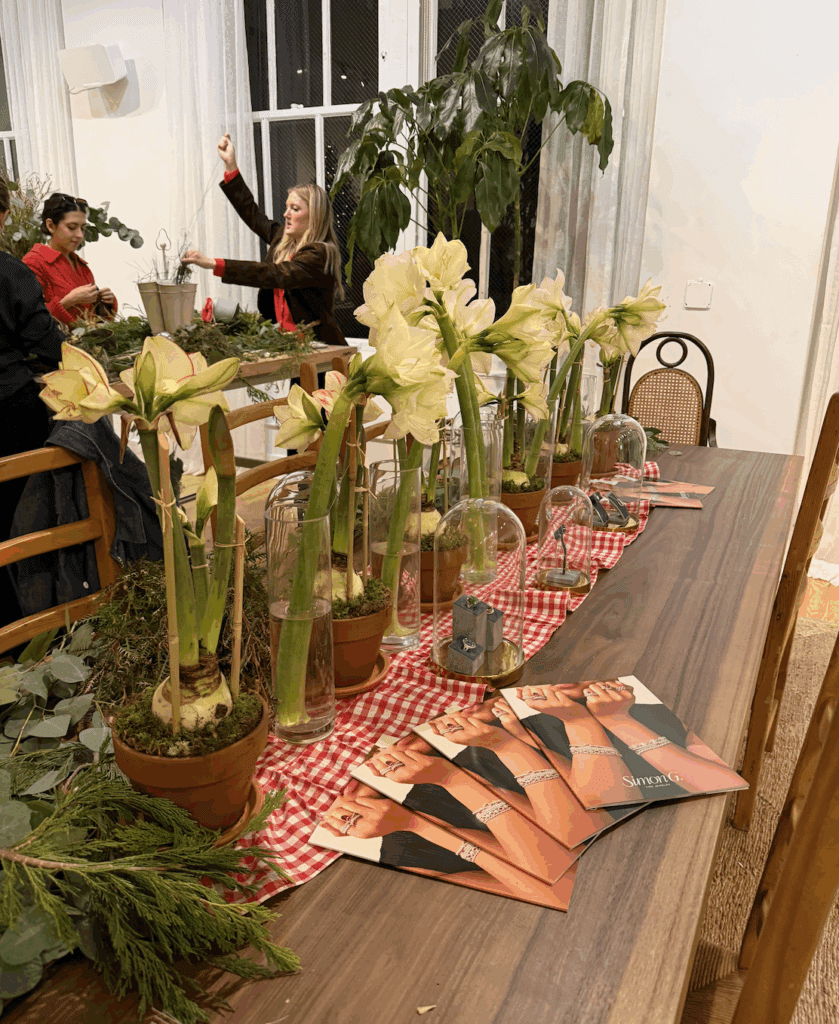 There is nothing I love more than arranging flowers and being creative — so when I found a workshop on Christmas Wreath making, I knew I needed to sign up for it. It was SOOOOO much fun and I highly suggest doing something fun and creative like this in the Holiday Time. I loved every minute of it. This workshop was put on by Pop-Up Florist, a beautiful floral delivery service in NYC, at their new space, House of Three.