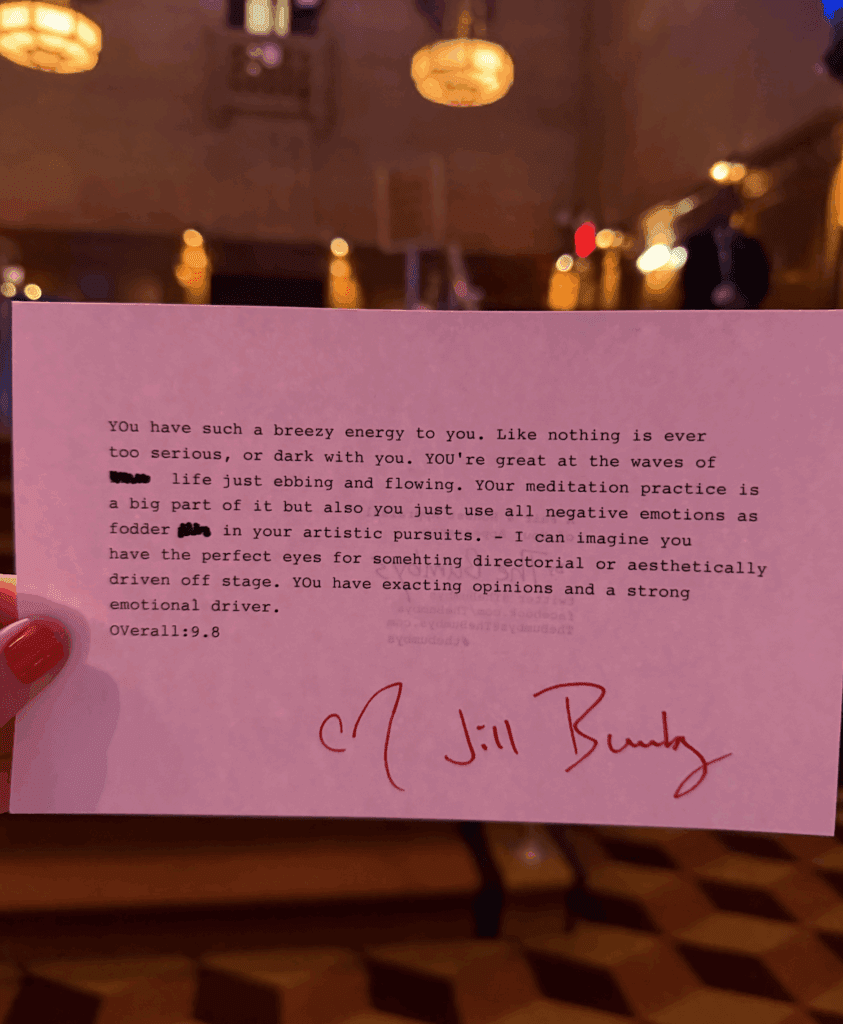 This past weekend, I went to a super fun Bat Mitzvah and one of the highlights was a duo that wrote first impressions about the guests. Yes, sounds totally weird, but it was incredible. This duo, The Bumbys, sit and look at you, but cannot talk or listen to you. Then, they type up their thoughts based on their examination of you.