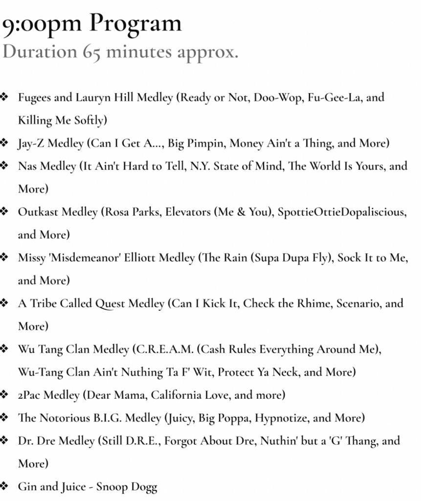 Before — they had a Queens ABBA set list — also seems fun and different.