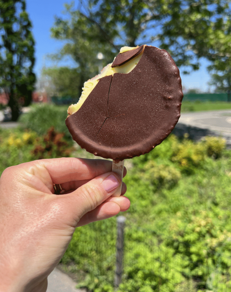 I have a lot of favorite desserts, but one of my TOP favorite desserts is key lime pie. And now just any key lime pie, but Steve’s Key Lime Pie. Steve’s pies are sold at dozens of stores in Manhattan, but if you want the freshest, then you have to travel to Red Hook in Brooklyn to his store. Yep, 30 minute drive — but oh so worth it. Especially on a beautiful sunny day, nothing beats eating Steve’s Key Lime Pie with the water view.