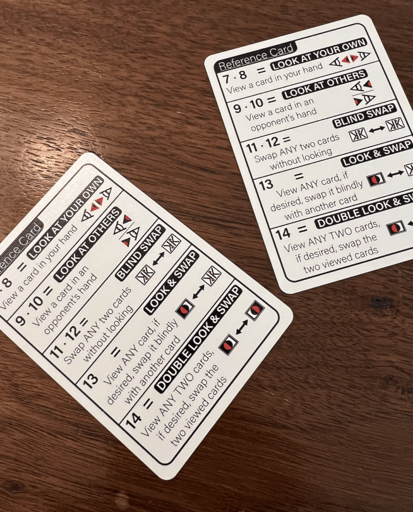 Cards to help you remember the game play.