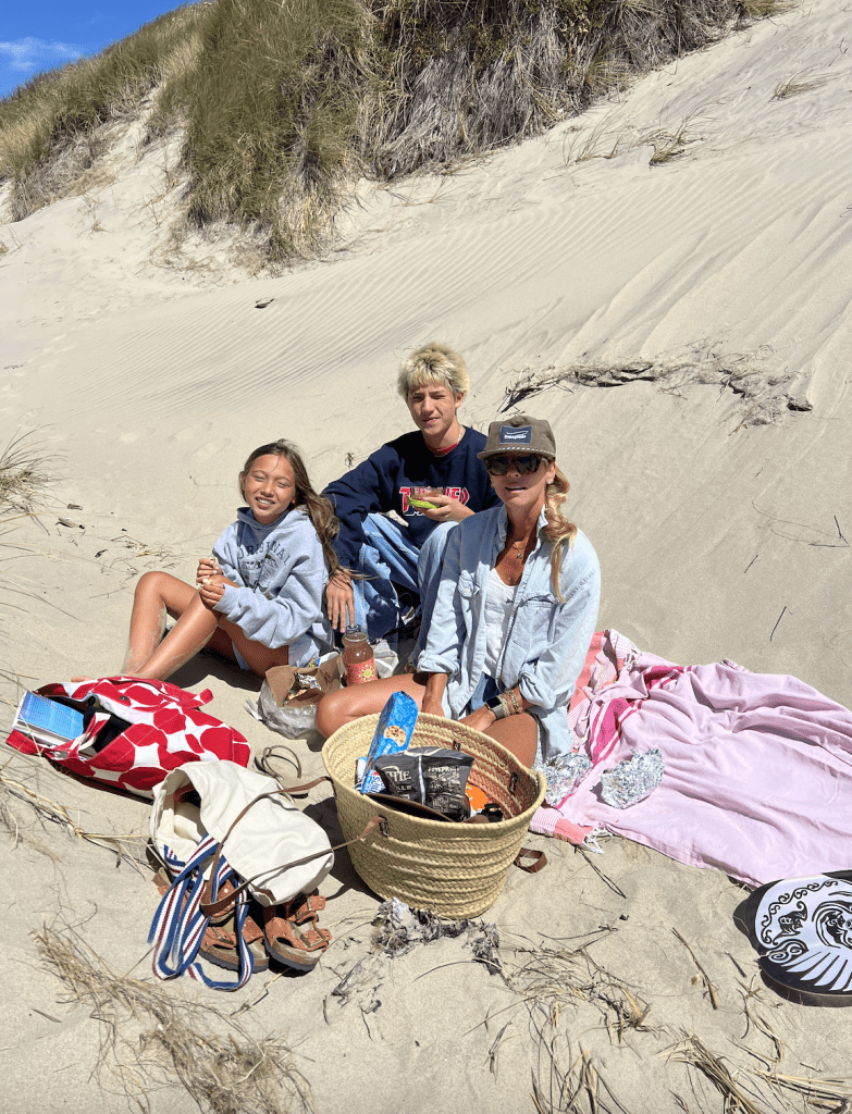 We do this photo shoot every year (with our own phones) because it is so much fun to jump on the dunes.