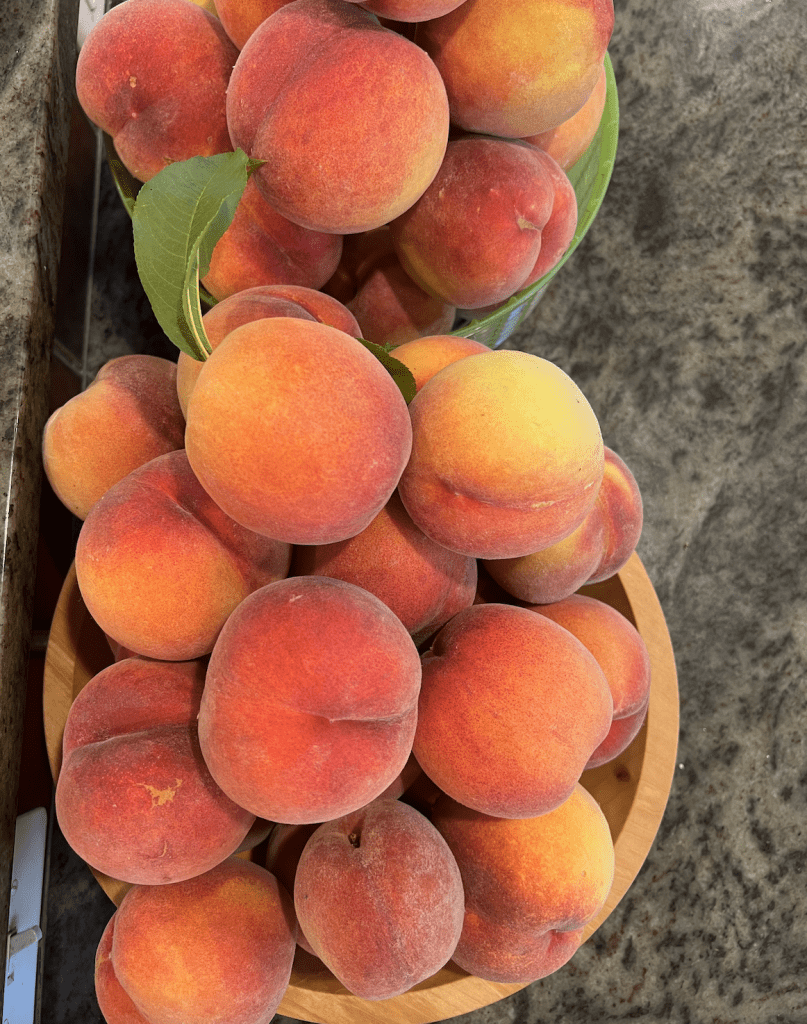 The problem is trying to figure out what to do with all the peaches. We had a bake off and had three different types of desserts with peaches — so delicious.