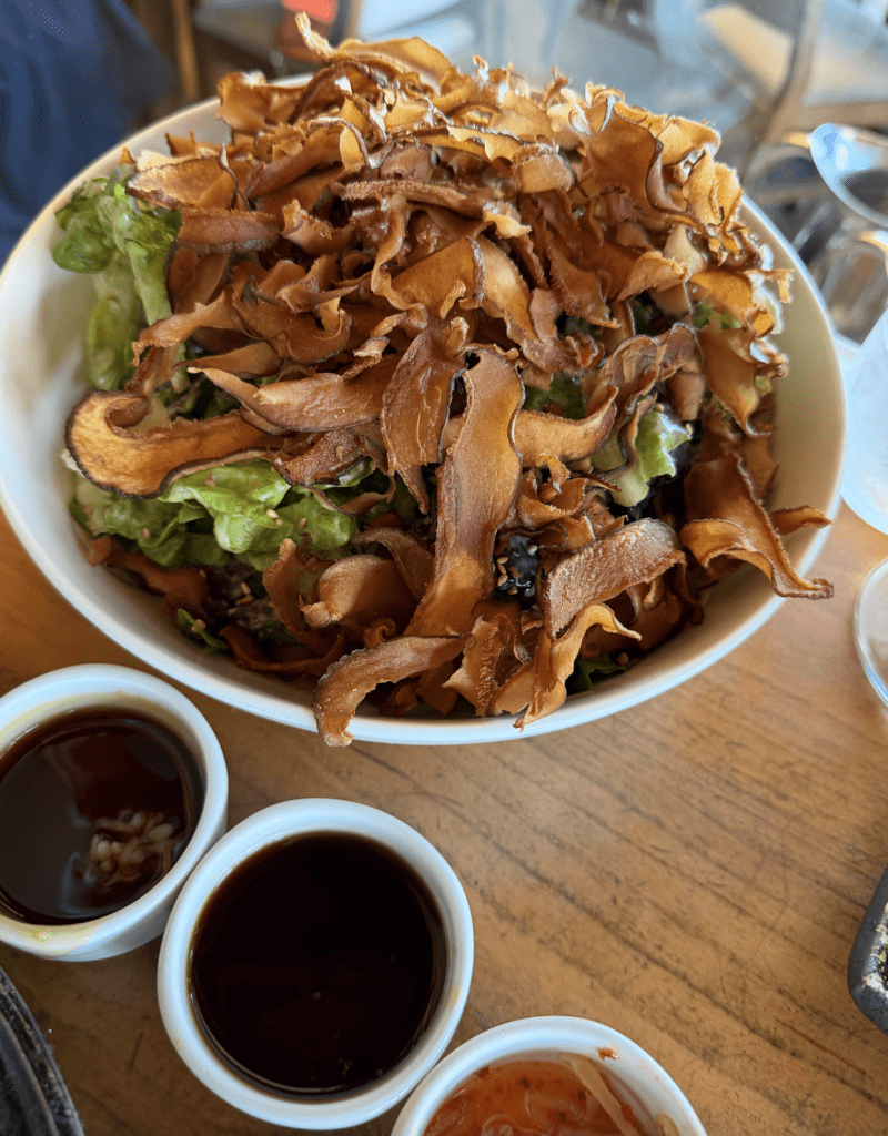 This salad is unique to the Nobu at Malibu and WOW it was unbelievable and I keep dreaming about it. It is a simple salad with crunchy mushrooms on top — and it might have been the best thing I have ever eaten.