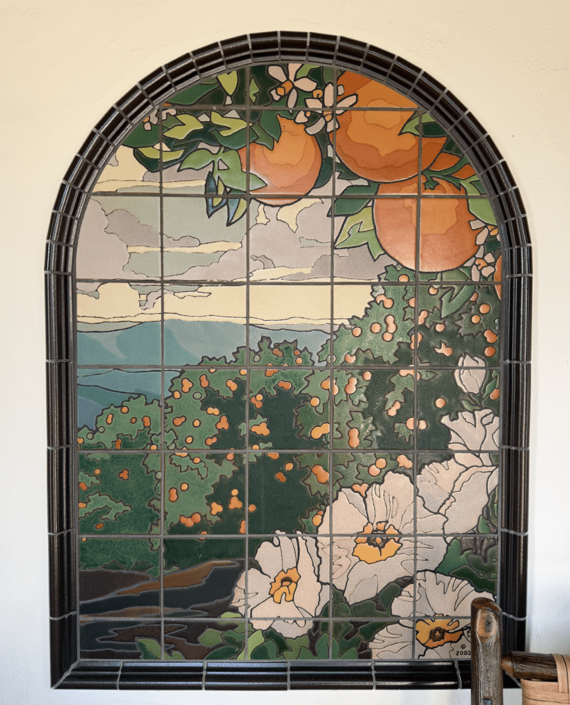 Ojai, California, is known for its citrus farms. And when I was there over last weekend and came across this magical tile art piece, I loved it. It really nailed Ojai. I love it.