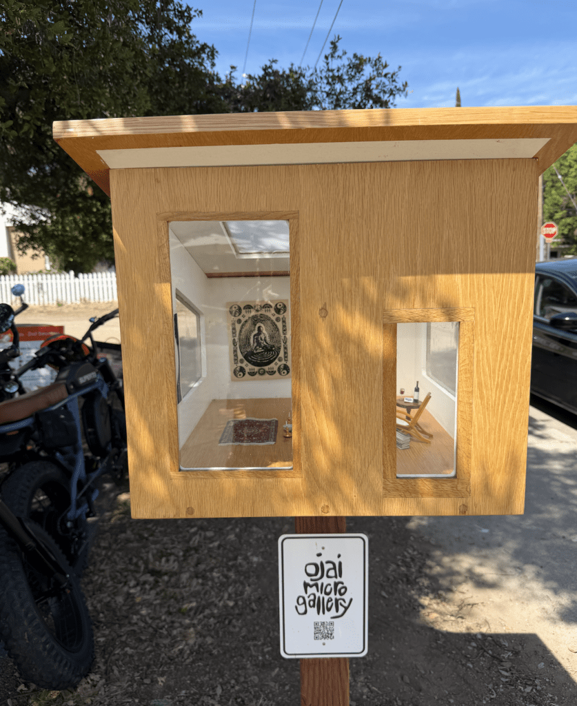 Came across this little art piece in Ojai while walking around. And fell in love with it — this particular installation is a little space about being alone. Ojai Micro Gallery (OMG) was born from a passion for fine art and the belief that art should be both curated thoughtfully and accessible to everyone. “As someone who finds joy in seeing art displayed in a way that invites curiosity and engagement, OMG is designed to offer just that—a space where art isn’t just something to look at, but something to experience.” I love it — so unique, quirky, and different.