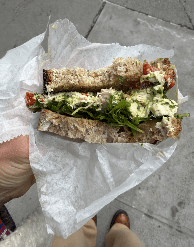On my way to the Chelsea galleries, I stopped and got a pesto chicken sandwich that was to die for. I want to learn how to make this because it was so delicious.